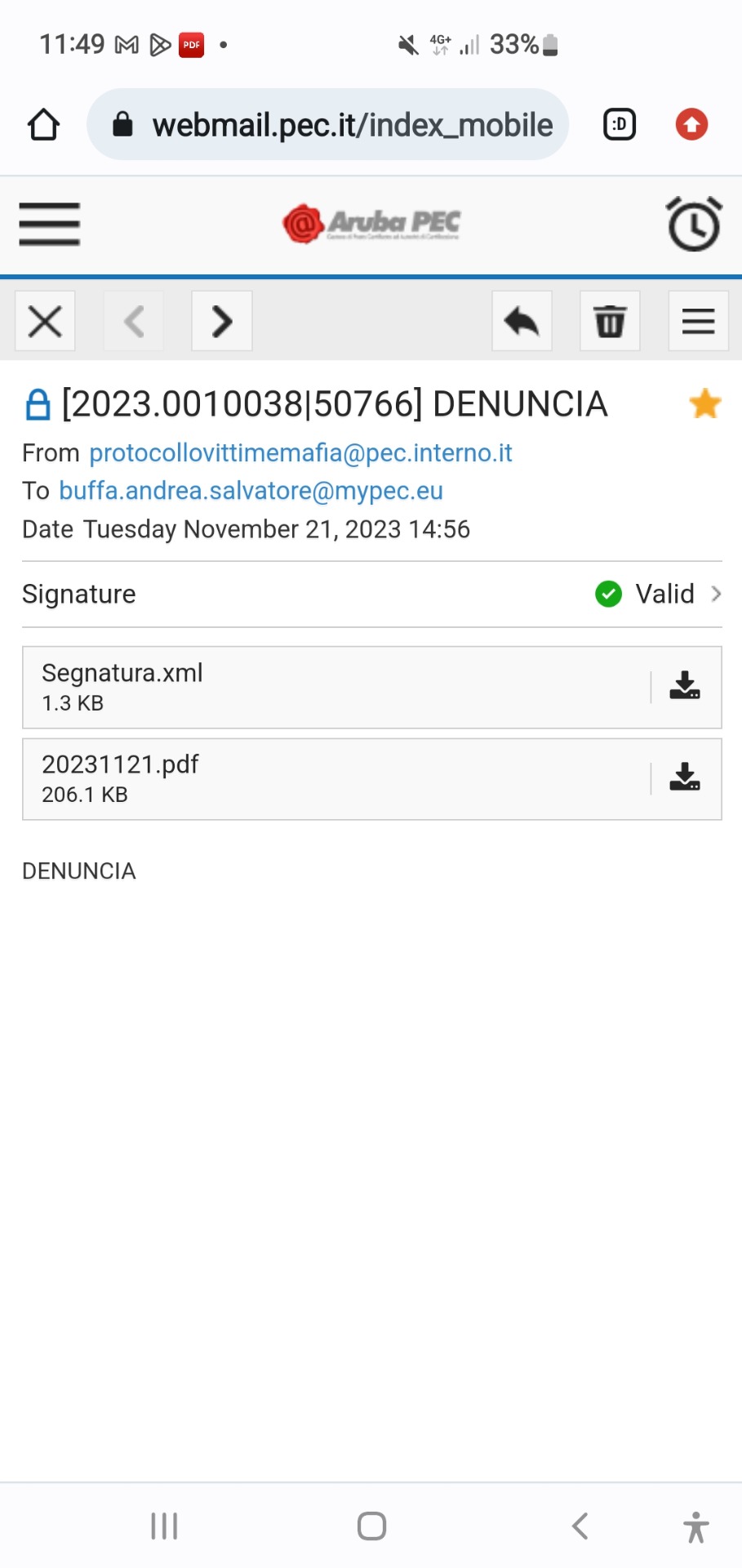 OGGETTO: denuncia